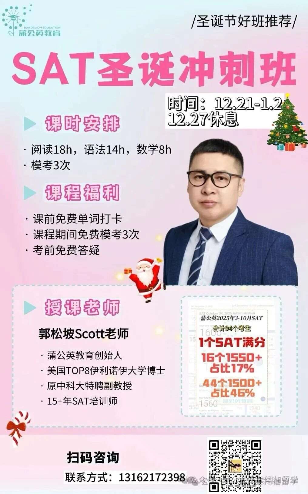 2025留美郭博士美国波士顿圣诞节SAT集训,资料领取/课程咨询请添加蒲公英教育Tansy老师,微信:pgytansy88