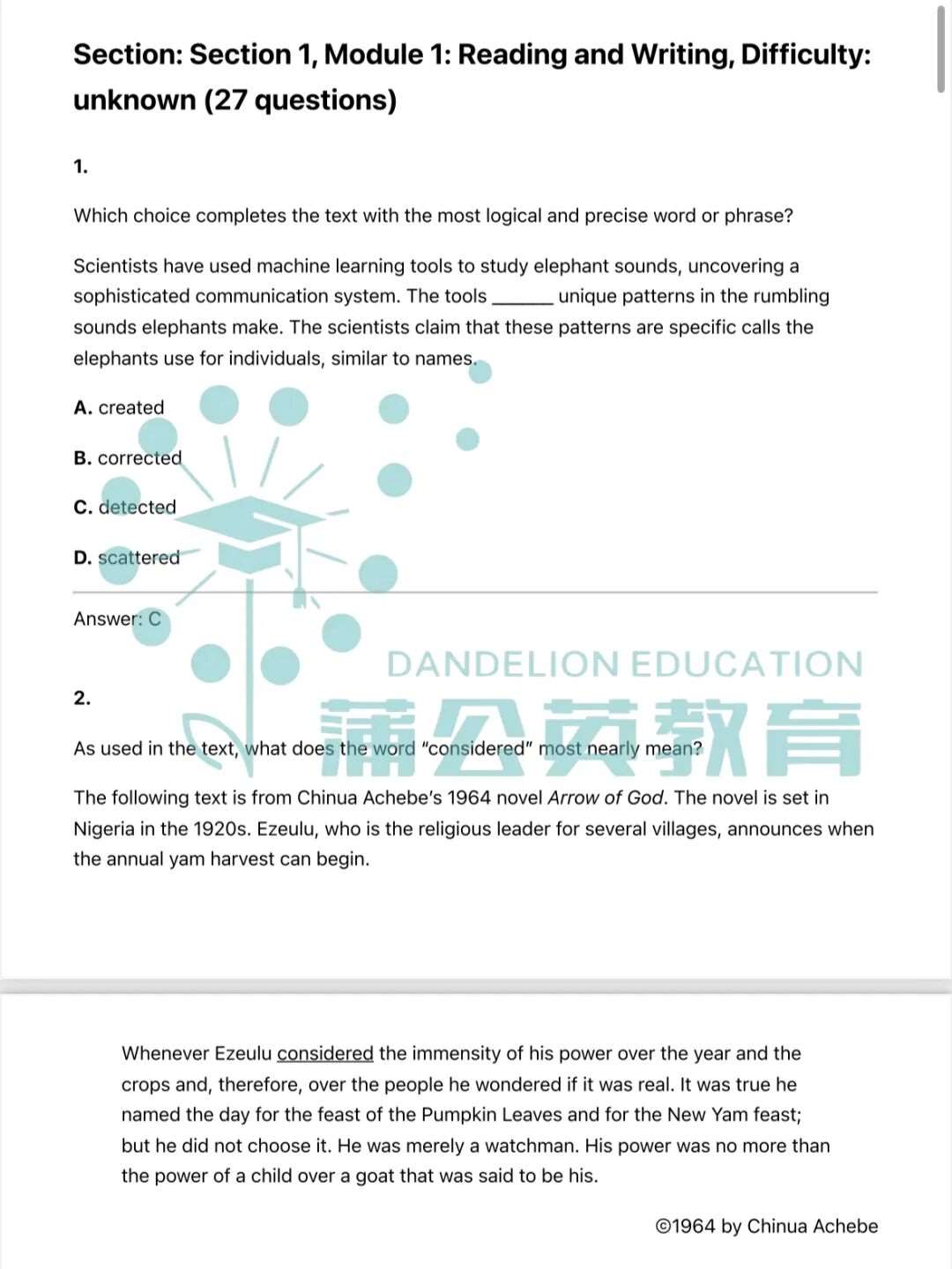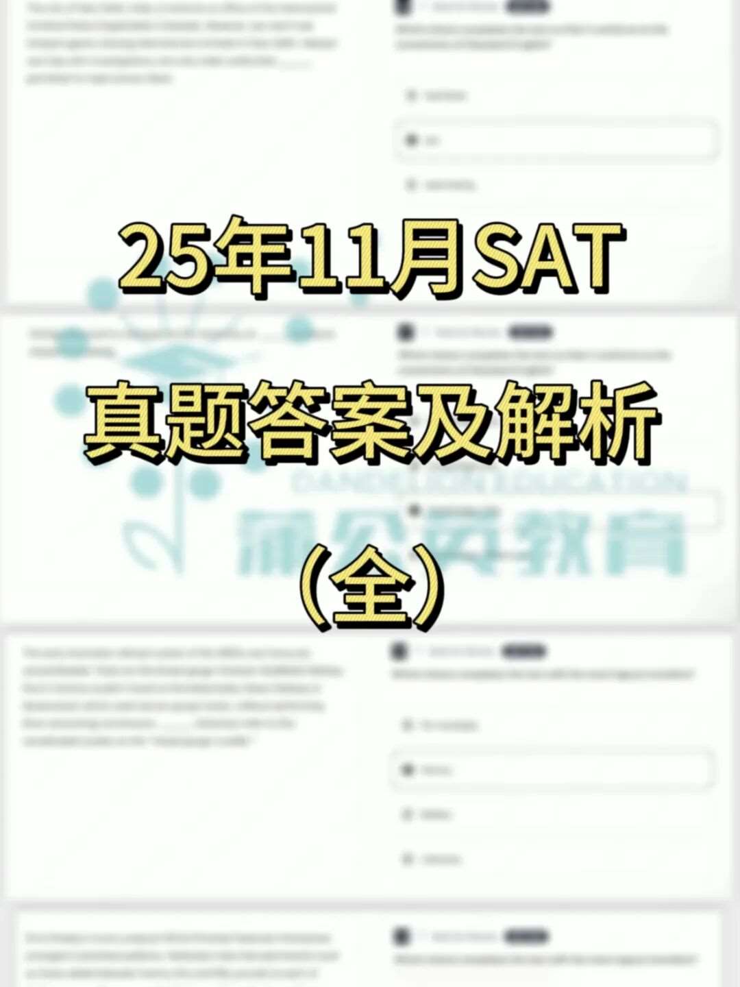 【快来对答案】2025年11月SAT真题答案pdf及解析已出!!电子版汇总(完整版高清),附上海蒲公英教育寒假SAT培训班招生