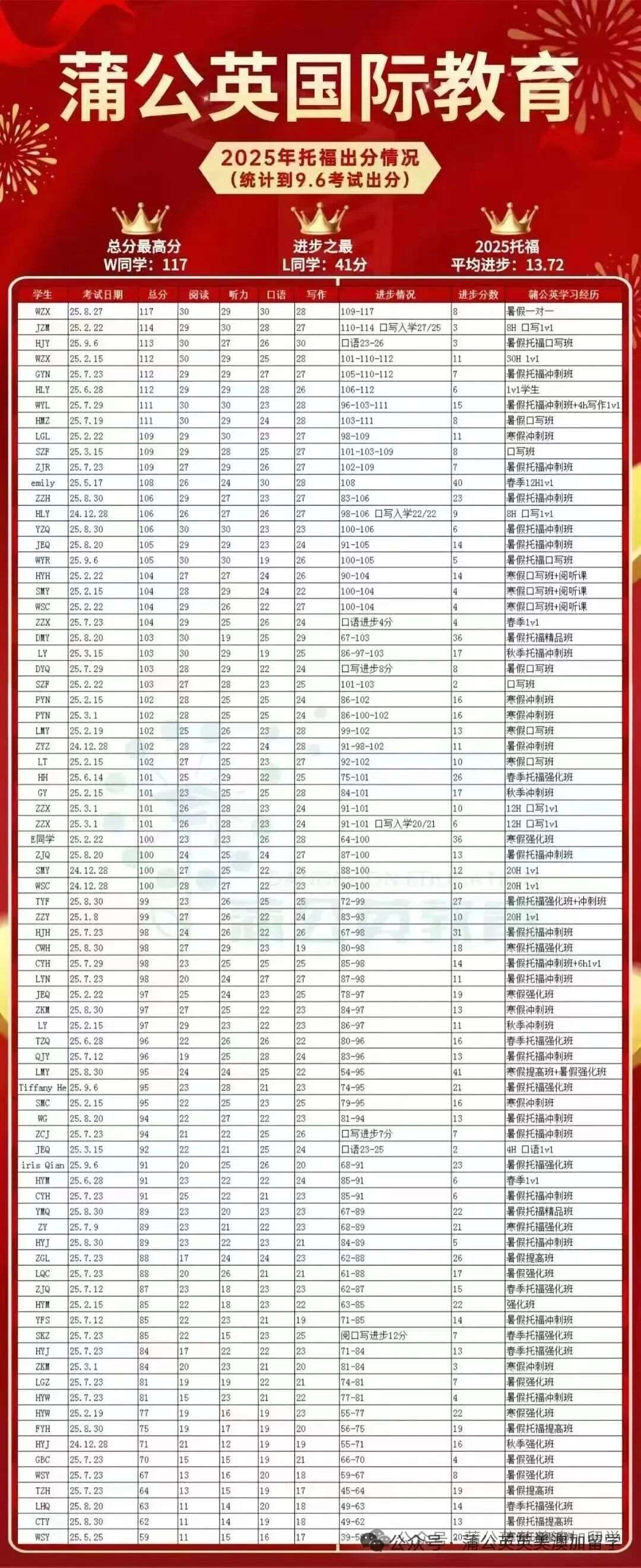 托福一个全程班平均进步10-15分。去年寒假21个托福100+的孩子,口语25+的8个,占比30%+; 写作15个25+,占比70%。