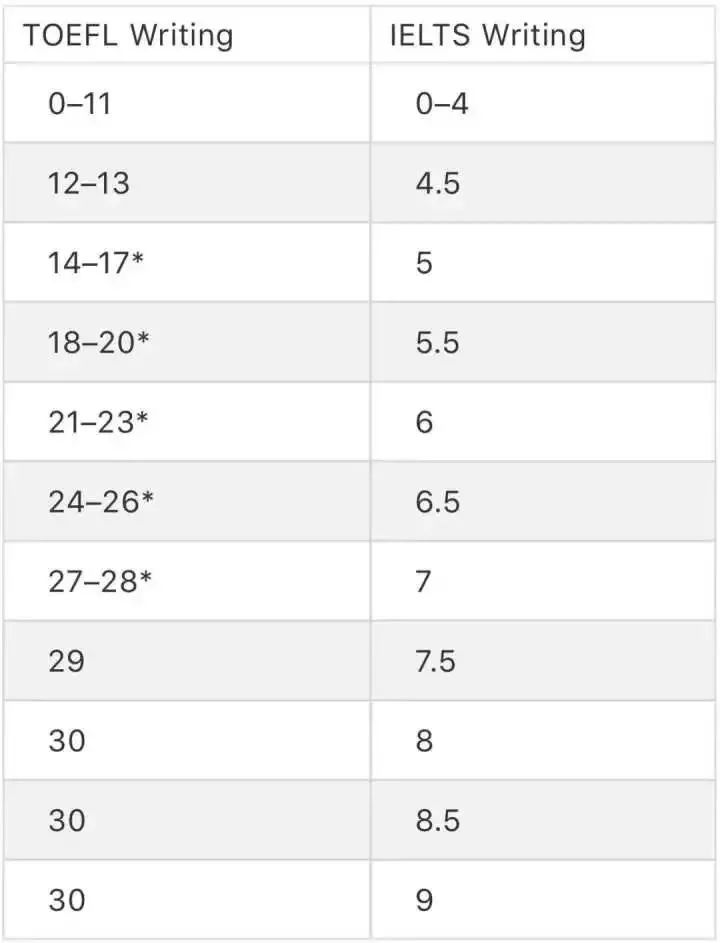 而值得关注的是,ETS官网曾发布过托福与雅思的分数换算标准: