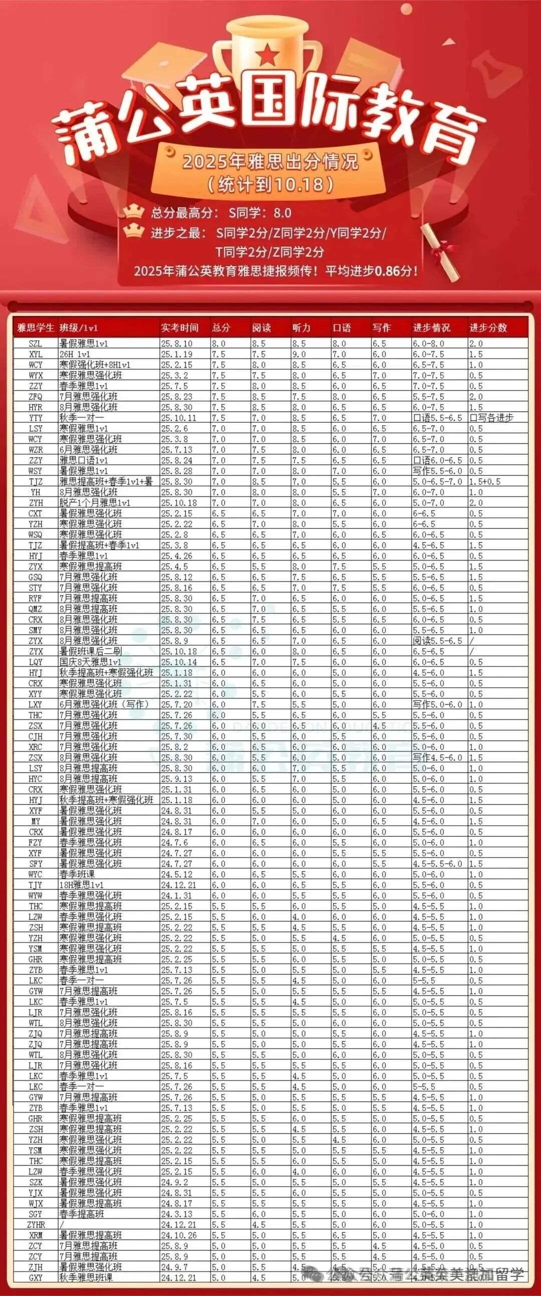 上海蒲公英雅思部分高分学员展示
