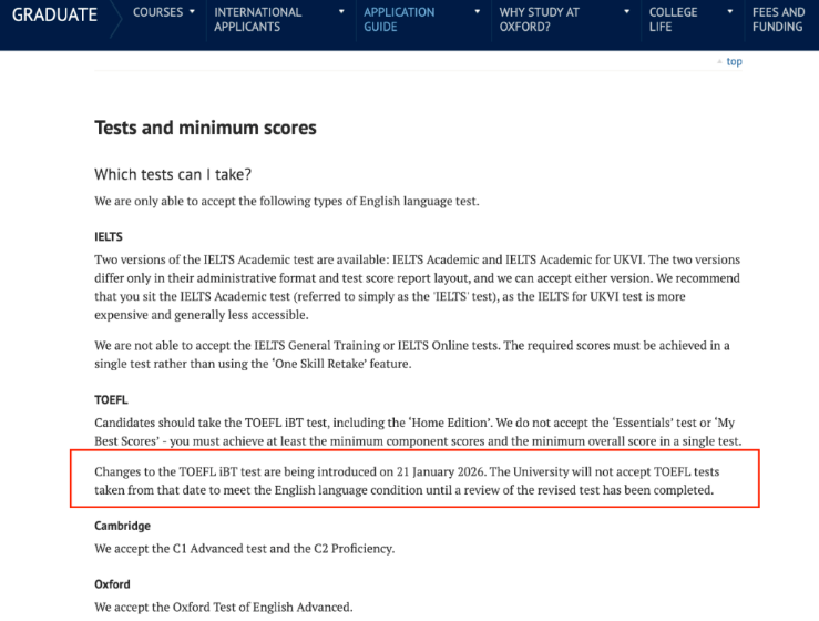 【最新】牛津官宣:不接受2026年托福改革后的*?!