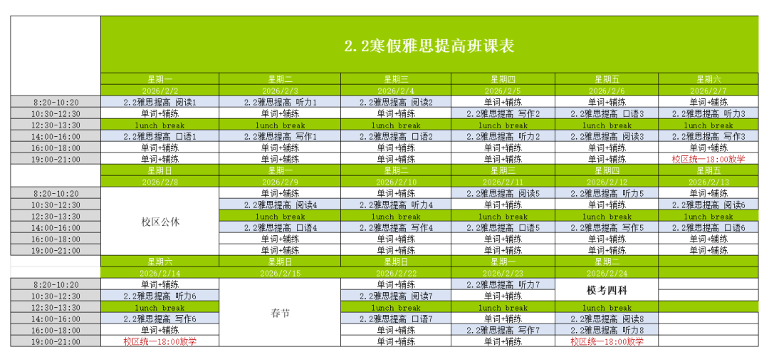 蒲公英教育上海线下初高中生雅思培训寒假班来啦~