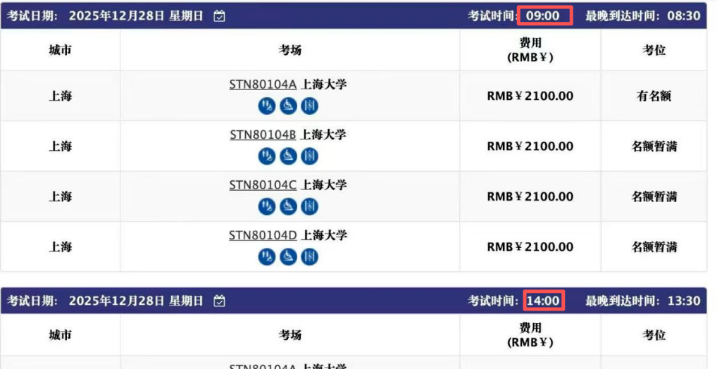 12月已新增12.28上下午两场托福考位