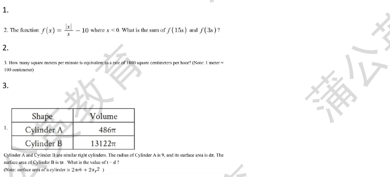 上海蒲公英SAT教研组|12月SAT数学必领考前机经免费领
