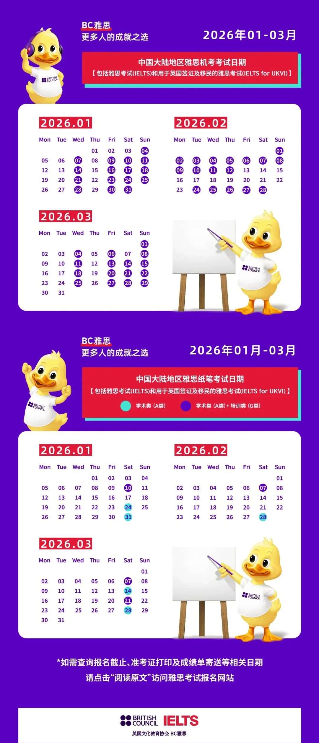 2026年雅思考试时间表(1-3月)