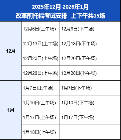 1月7日、1月10日、1月17日、1月18日这四个日期,依旧是现行托福考试,加上其他场次,1月共有7场老托福考试。
