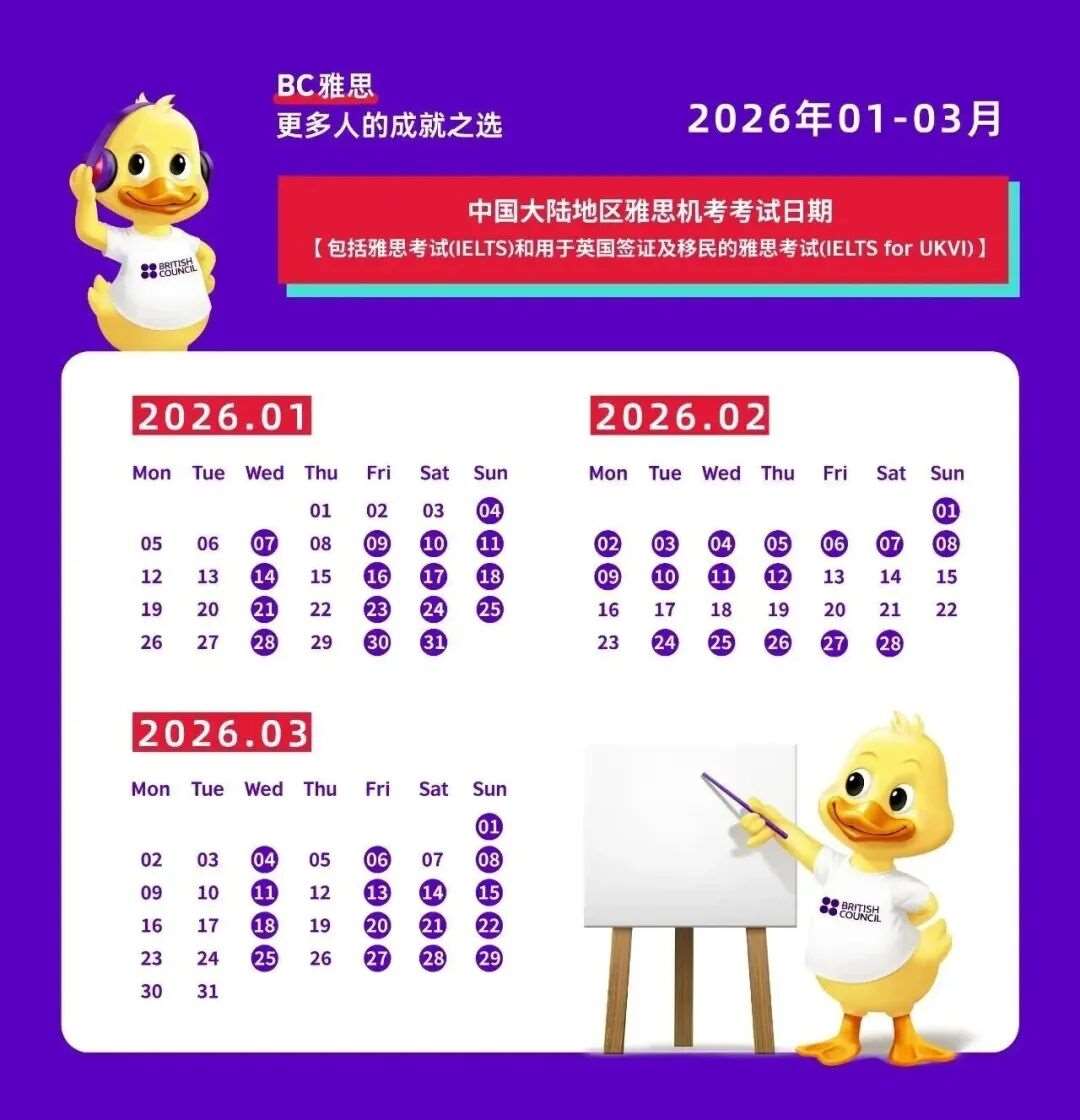 这个寒假是集中备考的黄金时段,适合用一场高效的 “短期战役”,终结漫长的雅思备考拉锯战。考位不等人,费用调整已明确,赶紧登录雅思报名官网锁定考位,结合自身情况制定备考计划,让雅思*成为你的竞争力加分项!+蒲公英小助手VX:13162172398领取雅思正课试听与雅思学习大礼包!