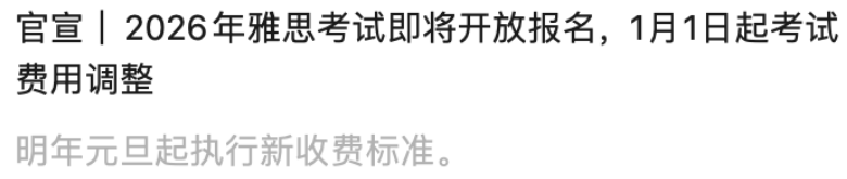 破天荒!2026年雅思考试报名费降价!重回“1”字时代,同步调整雅思转退考手续费!2026年1-3月雅思考试时间定了!