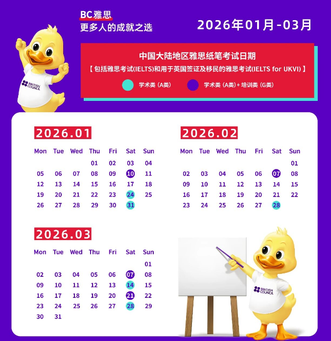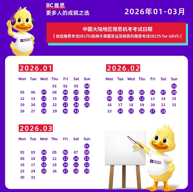 【2026年1-3月雅思考试时间】