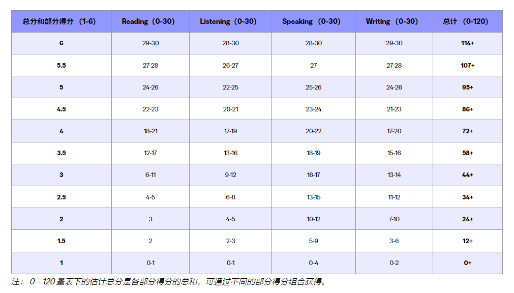 新托福分数对照表 | 托福总分变成6分了?托福100分要求对应5分?
