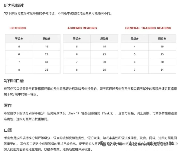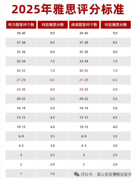 以下是对“雅思小白必看 | 2025年雅思评分标准对照表、计算方式和分数对应表”内容的解读: