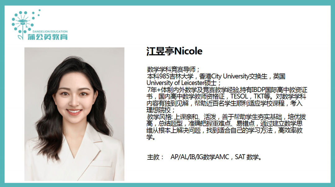 蒲 公 英 教 育——师 资 介 绍: