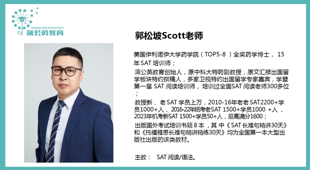 蒲公英教育SAT项目组目前合计共有4位老师:
