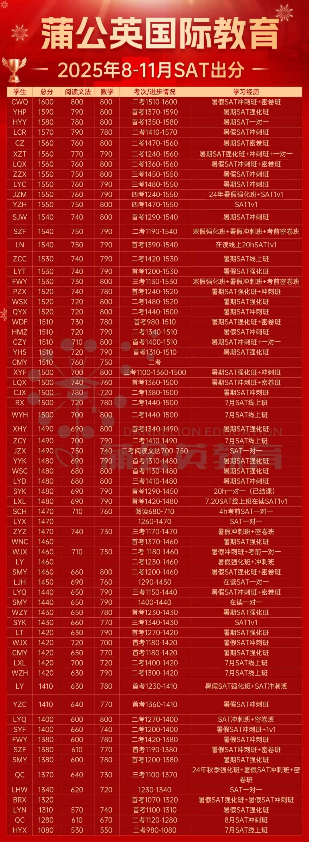 教授新 、老SAT学员上万,2010-16年老老SAT2200+学员1000+人, 2016-22年纸考老SAT1500+学员1000+人 ,2023年机考新SAT1500+学员50+人,*高满分1600;