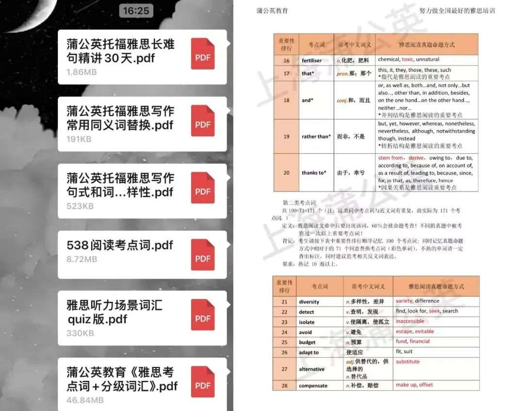 (3)我们蒲公英教育郭博士整理出雅思鸡精词汇合集pdf版,需要的同学们速来ling!