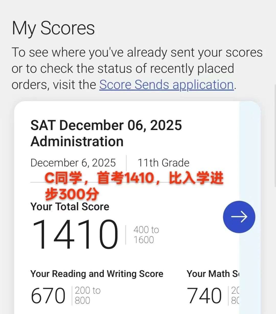 C同学,首考1410,比入学进步300分