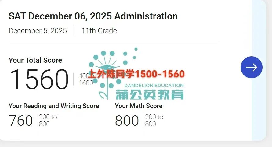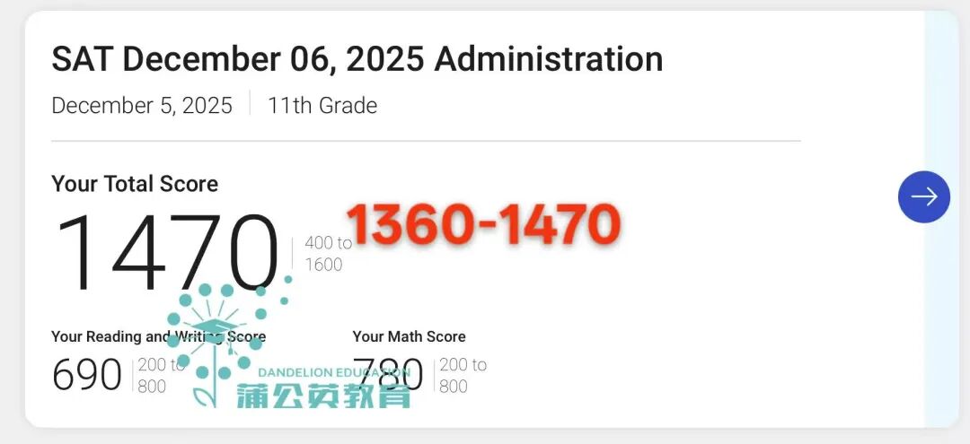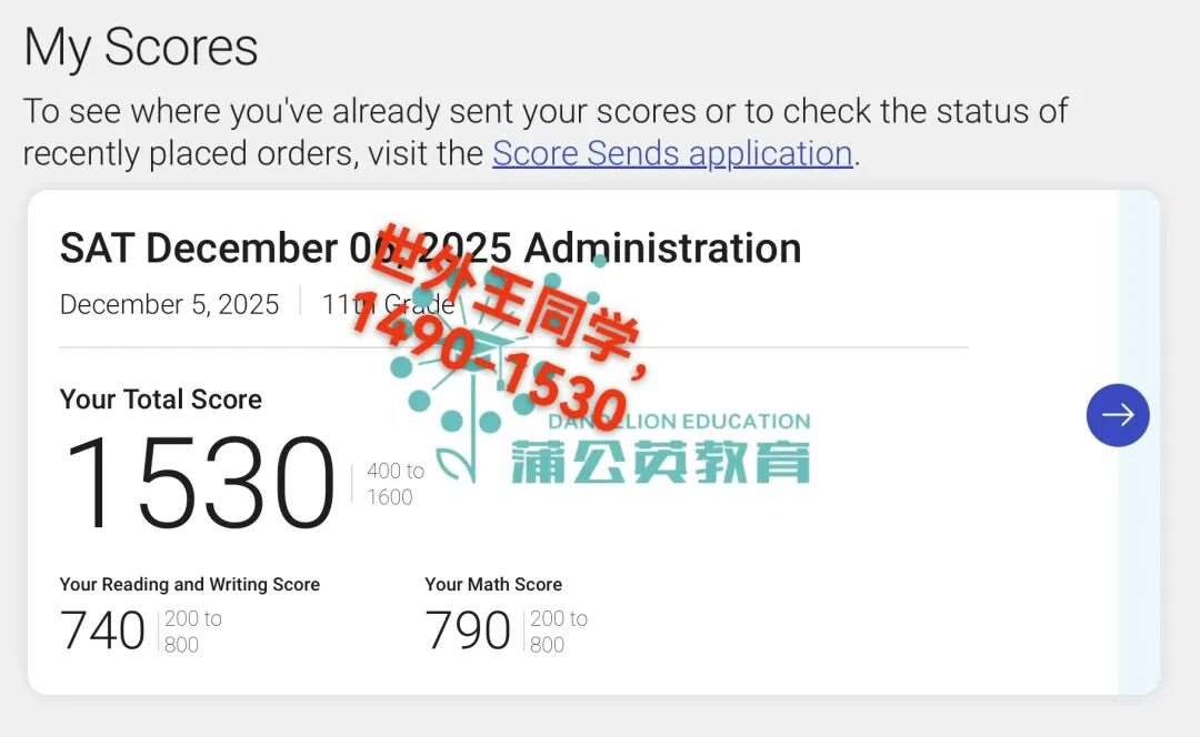 【SAT高分喜报】蒲公英教育12月SAT出分超高分SAT1580分,抢占SAT寒假&春季课程席位下一个高分就是你!