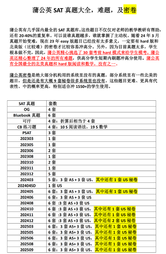 【免费领取】上海蒲公英国际教育,SAT考试真题大全、难题及密卷!SAT真题答案pdf下载!电子版汇总(完整版高清)