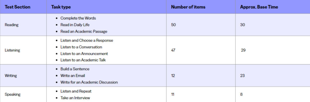 ✅ 写作:涉及构建句子、写邮件、学术讨论 3 大题型,共计 12 道题,考试时长约 23 分钟