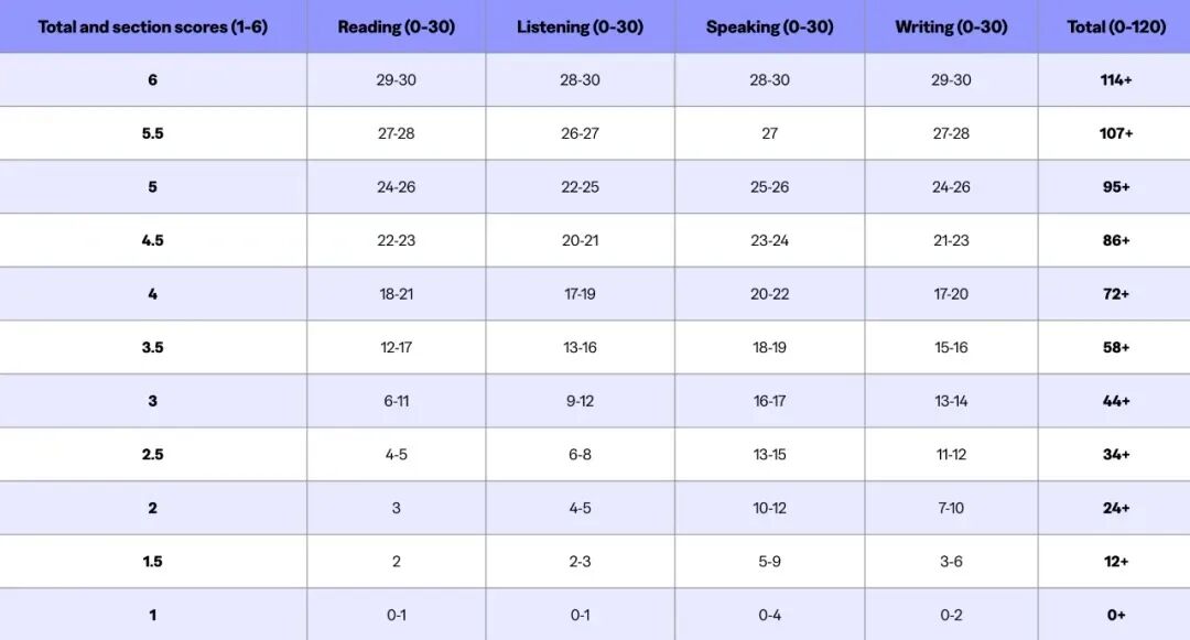 计分体系全面调整:原 120 分制正式改为 6 分制,分数以 0.5 分为最小递增单位,分值可直接对标 CEFR 欧洲语言共同参考框架,适配全球院校语言标准对接需求。 分数双轨制设置过渡期:2026-2027 年为两年过渡期,期间托福官方*单将同步显示 120 分制与 6 分制双分数,避免衔接断层;自 2028 年起,*单将统一仅呈现 6 分制分数,正式完成计分体系切换。