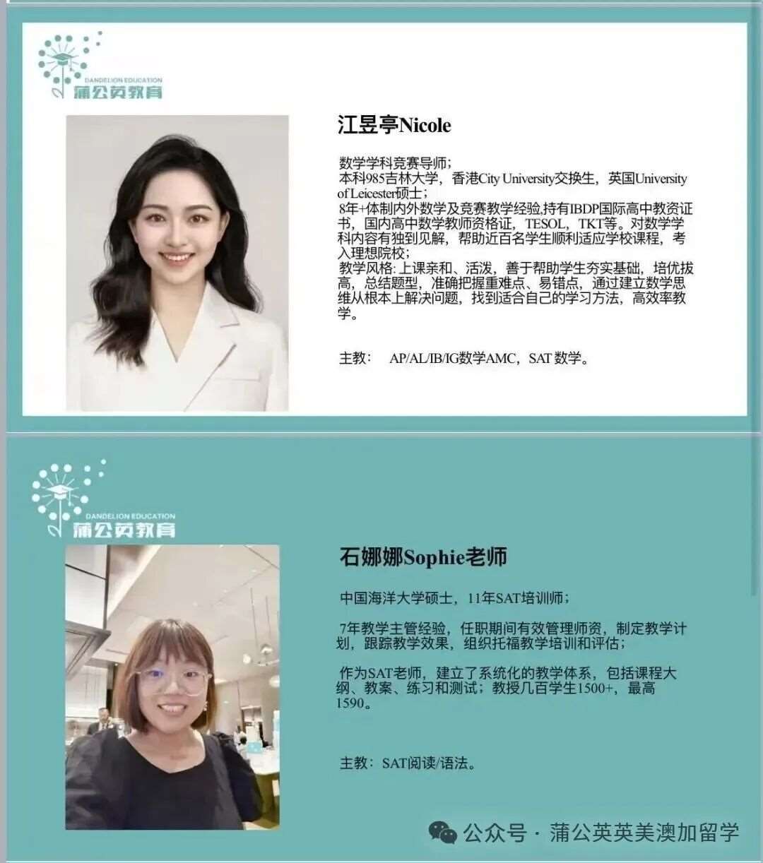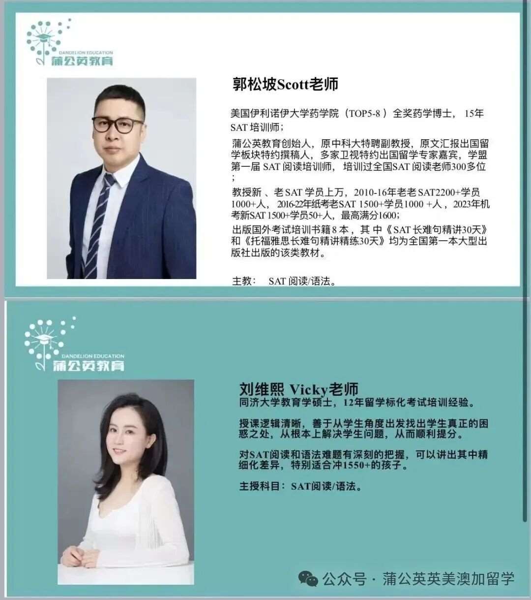 蒲公英教育SAT项目组目前合计共有5位老师:3名海龟:1名美国博士,2名英美港硕士;2名国内知名高校硕士;硕士及以上学历;60%老师10年以上教学经验。