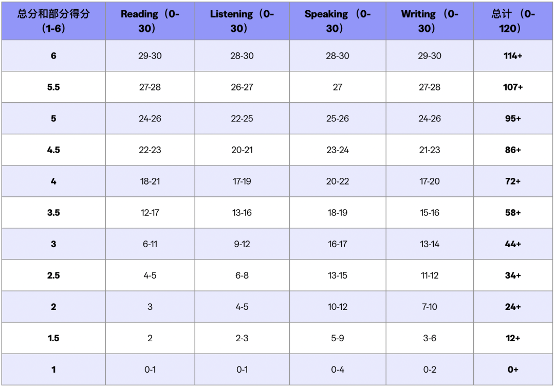 托福分数对照 托福6分制与120分制对应表