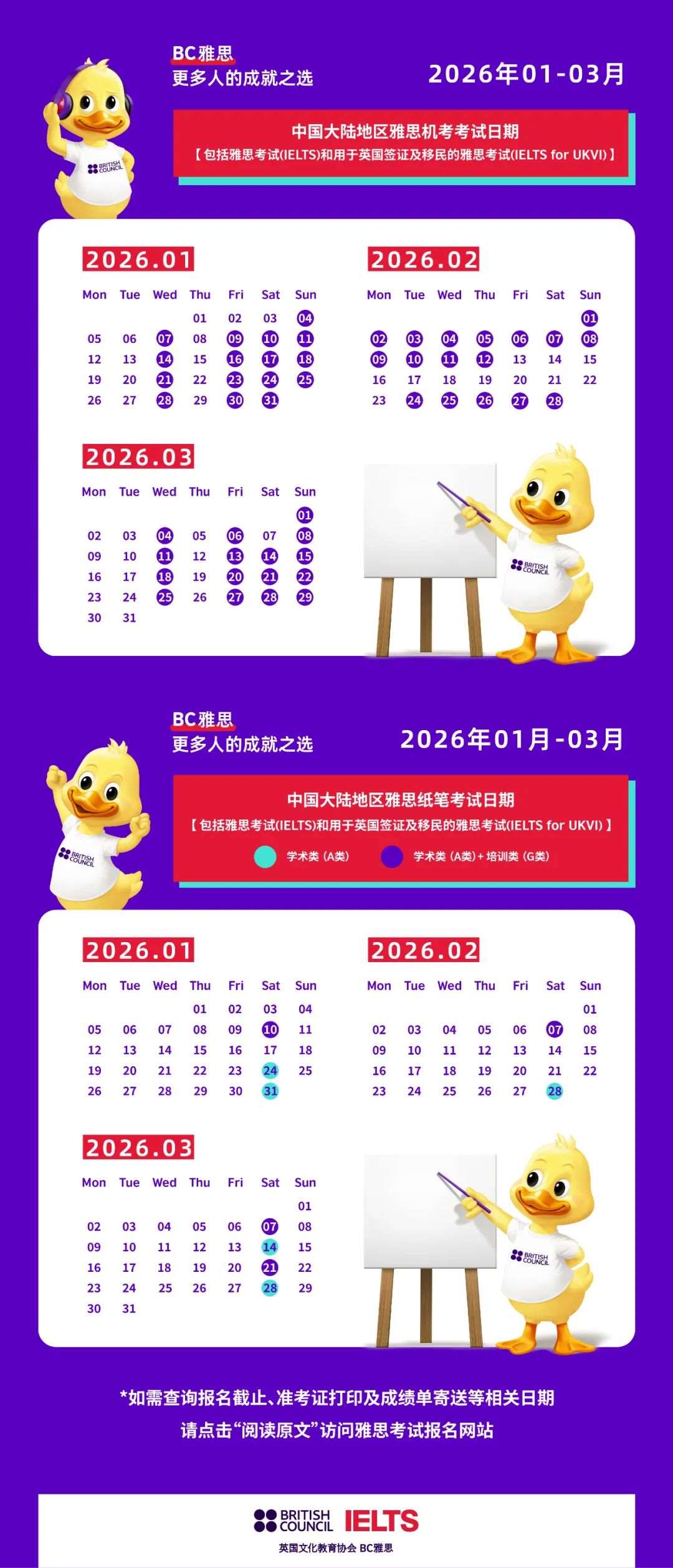 每年6-7月、12月-1月是各大学校的期末周,这期间的考试场次从2026年雅思考试时间来看也有不少安排,但对于要留学的同学来说,录取院校对绩点有明确要求,千万别捡了芝麻丢西瓜。