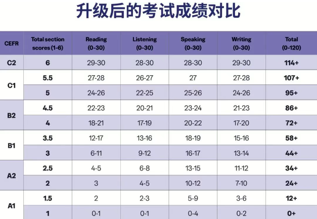 双轨并行:在保留0-120总分的同时,新增1-6分等级制,并直接对标《欧洲语言共同参考框架》(CEFR)。