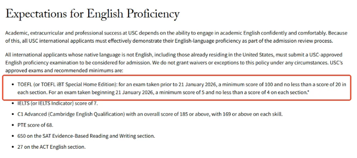 (南加州大学官网2026年新版托福*要求)