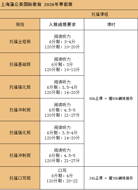 寒假冲!26年上海娃的寒假计划!15天托福全科强化!新托福寒假课程培训营110分计划!零基础适用!