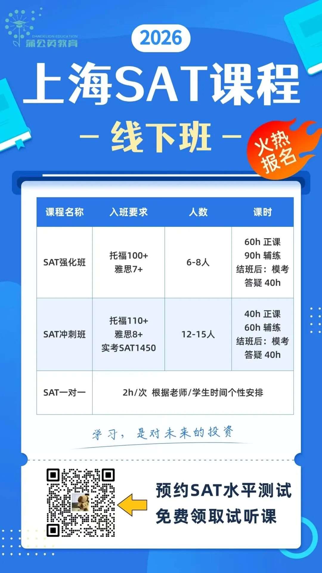 2026年SAT考试想要在波动中稳抓高分,科学的备考规划和专业的指导至关重要。上海蒲公英SAT课程,精准匹配2026年考试趋势,由深耕SAT教学15+年的老师带队,从考情拆解、逻辑训练到心态引导全流程护航!