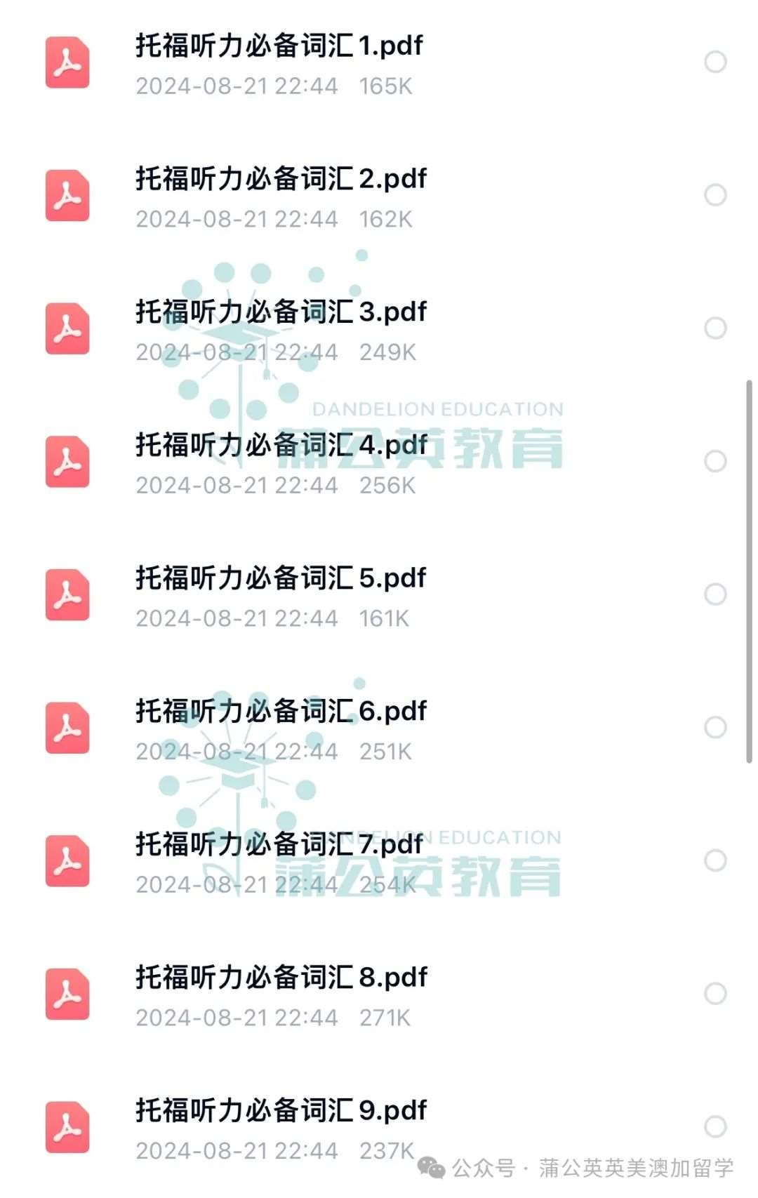 完整版资料添加蒲公英小助手回复【托福听力词汇】领取!