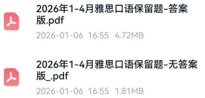 IELTS刚发布!2026年最新1-4月雅思口语题库完整版(附高清PDF+参考答案)