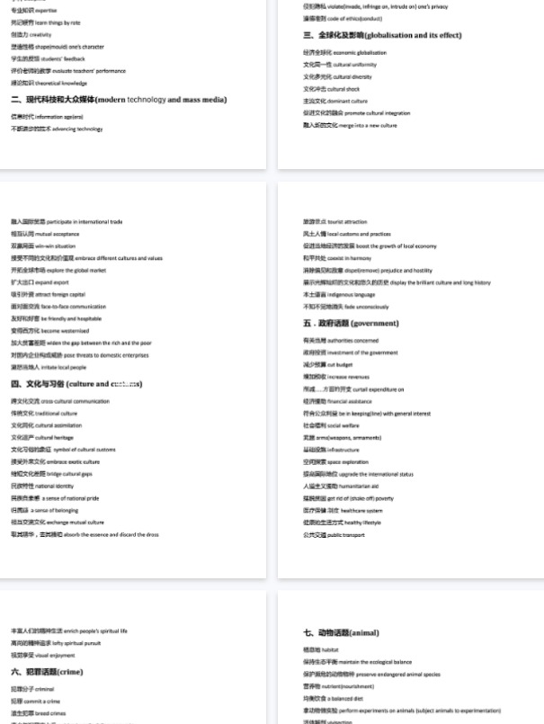 而经过分类整理的话题词汇,不仅涵盖核心名词、动词、形容词,还包含固定搭配和常用句型,能让考生在写作时直接调用精准、地道的表达,大幅提升作文的流畅度和专业性。