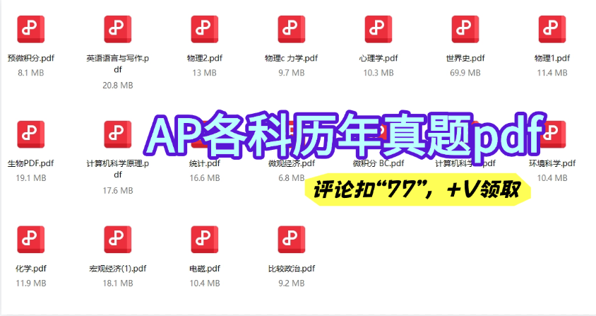 小编给大家准备了AP全科真题电子版,让宝子们备考无忧,不用到处找资料,专心备战5月大考!理科多练计算熟练度,文科注重逻辑链搭建,FRQ提前背记模板句式,节省答题时间哦!(领取方式往下滑)