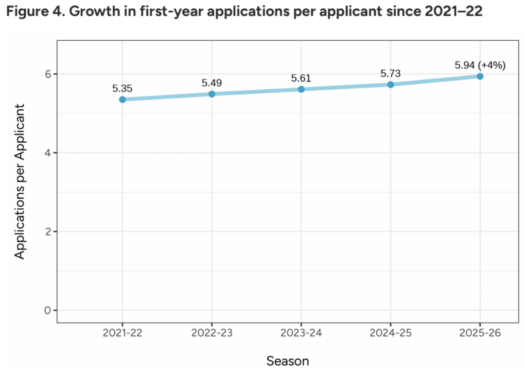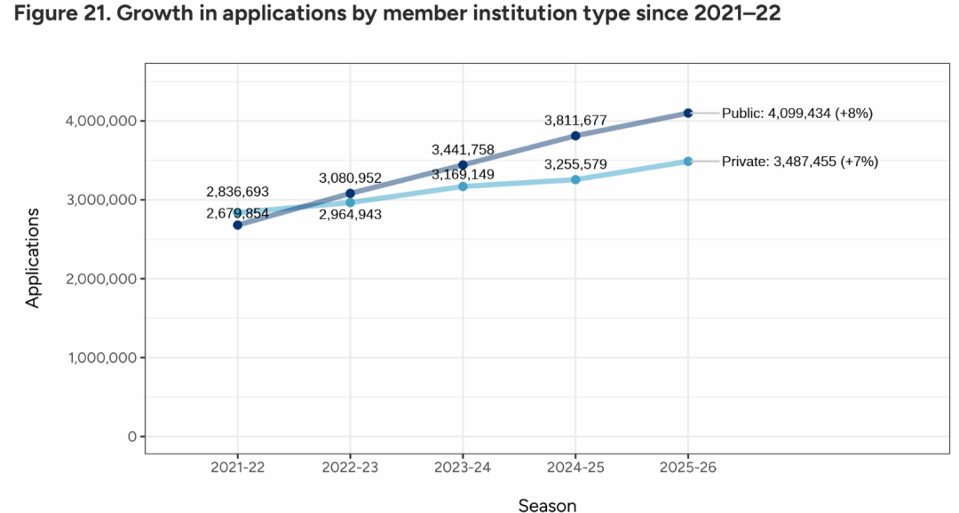 与上一申请季同期相比,申请人数增幅 4%,总申请量增幅达 7%。