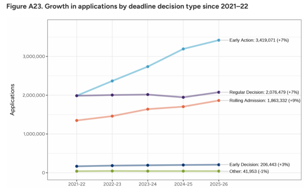 值得关注的是,相较于 11 月初的统计数据,本季申请增长速率已出现放缓迹象,但整体仍保持上行态势,这也印证了美本申请的市场热度并未消退。