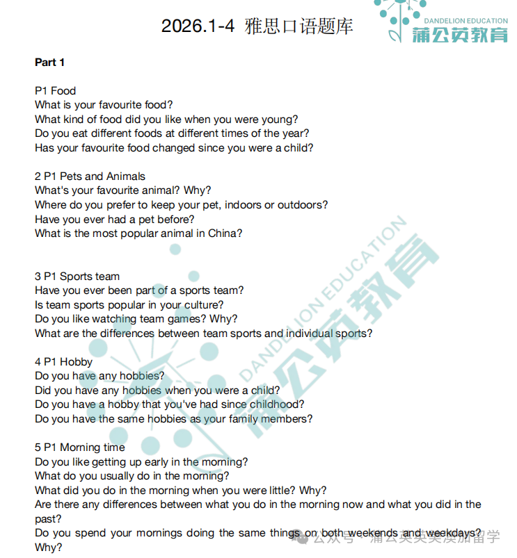 欢迎关注我们,文末有2026年1-4月雅思口语题库PDF电子版汇总【含答案 + 音频】供您领取!