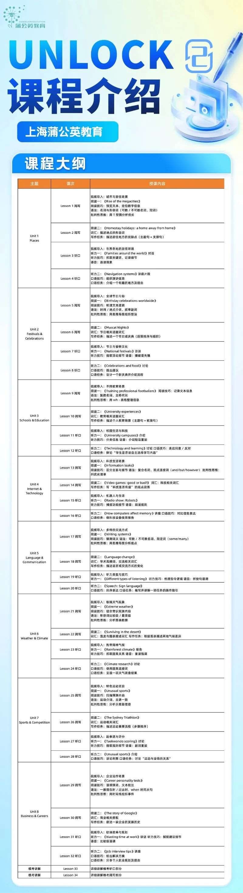蒲公英教育UNLOCKE课程介绍