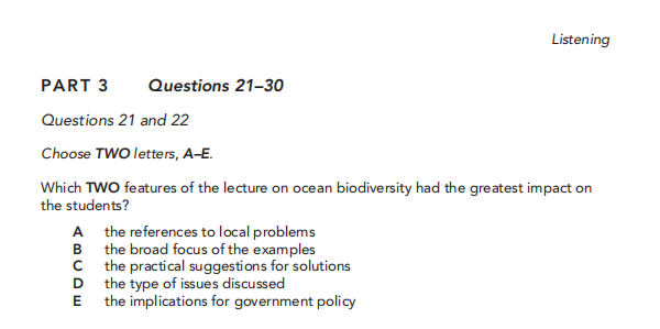 Part1:帆船俱乐部课程咨询,10 道填空题 Part2:化妆实习生工作介绍,6 道单选 + 4 道匹配题 Part3:海洋生物多样性讲座,以多选题为主