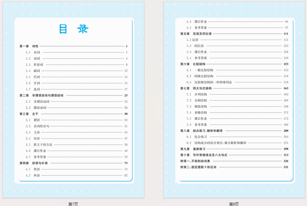 全书共10章,从词性识别、谓/非谓语辨析,到拆解句子主干、处理各类从句,再到比较结构、四大句式讲解,层层递进不跳步。还配套100句综合解析、长难句练习题+写作句式模板,学练结合不脱节。