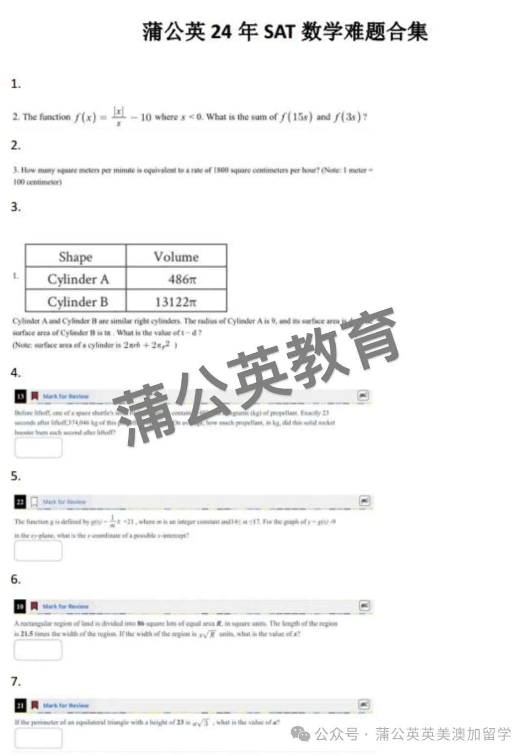 刷完这些SAT数学难题合集题目=24年之前的所有SAT数学真题不用再刷!含金量拉满!