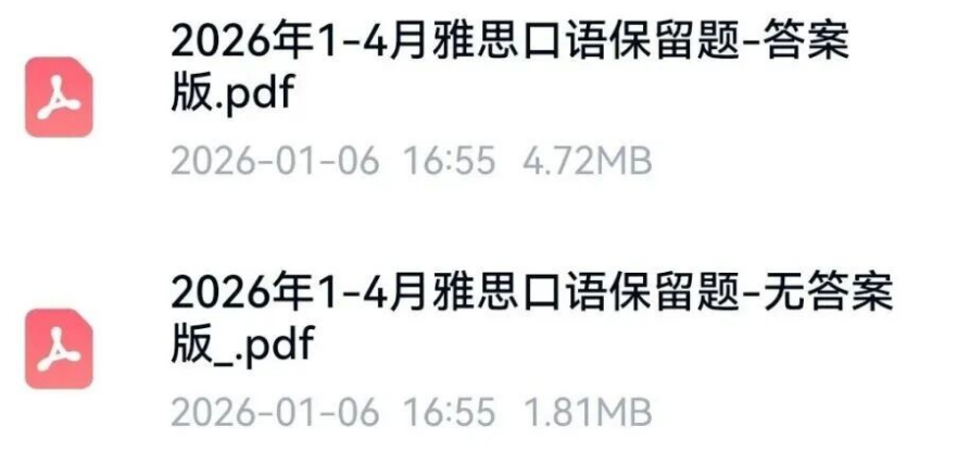 【雅思口语】2026年最新1-4月雅思口语题库完整版(附高清PDF+参考答案)