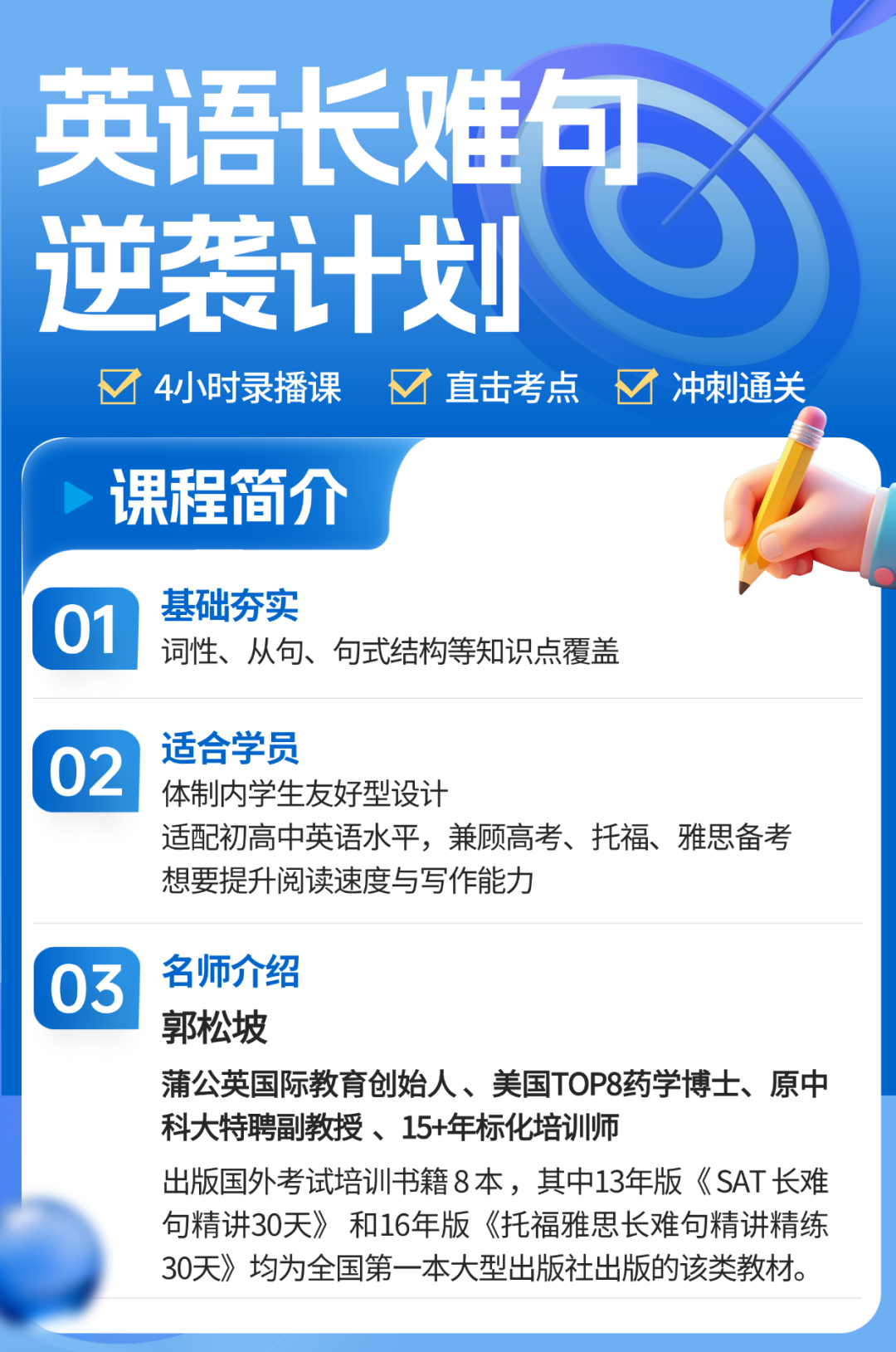 我们都知道,线下大班课价格高昂,还受地域限制,网课就成了性价比更高的选择。上海蒲公英推出的托福长难句分析精讲视频课,正是为解决这些痛点而生。
