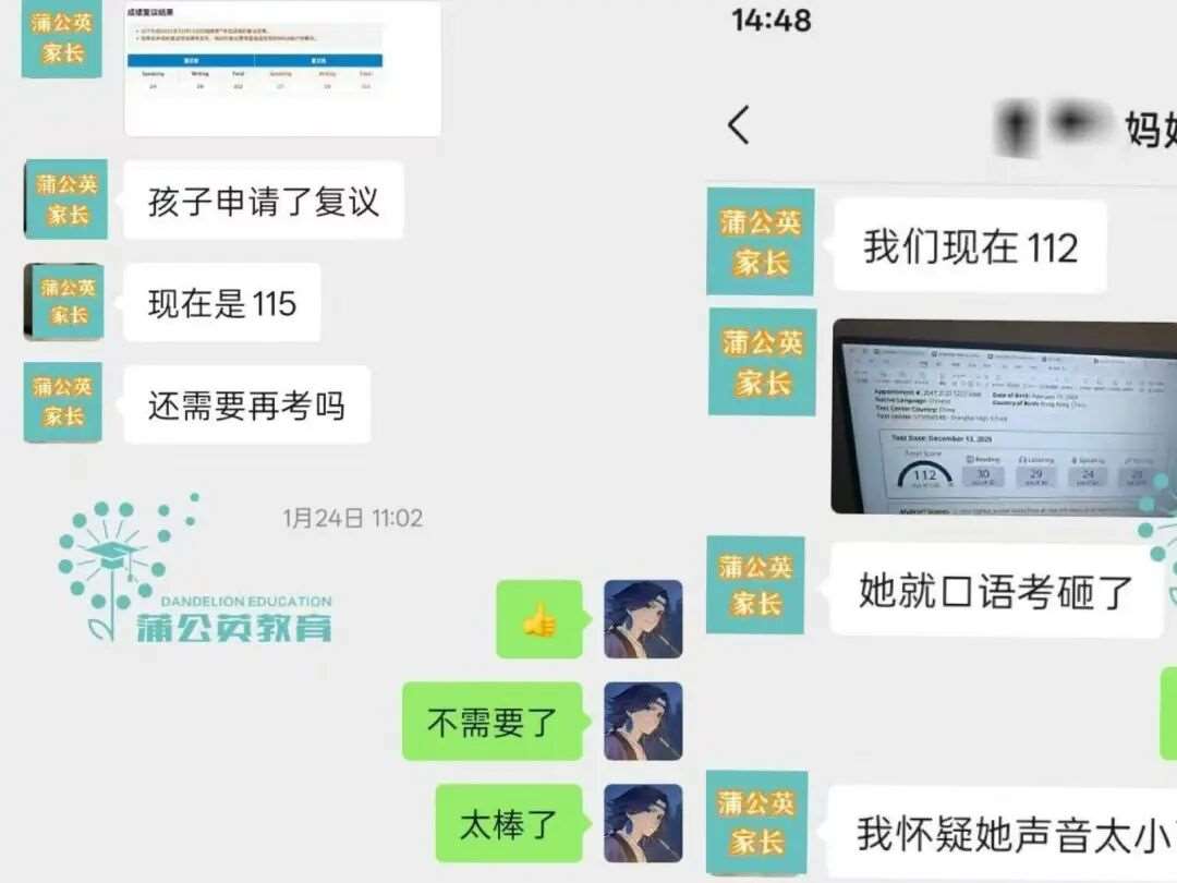 恭喜!两位同学托福*分别拿到了115、112的超高分💯