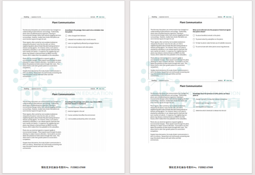 真题的题型配比、题目节奏均来源于2026年托福实考,包括阅读文章的长度、听力音频的语速、口语答题的时间限制、写作的字数要求等细节。