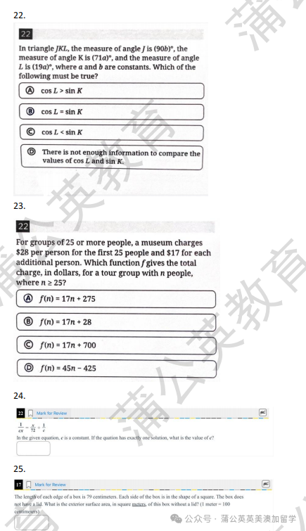 重磅!3月SAT有救啦~SAT数学难题合集pdf汇总!【完整电子版高清】,认准上海蒲公英国际教育!