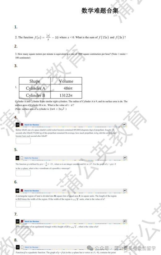 3月SAT有救了!SAT数学难题合集pdf汇总!【完整电子版高清】,免费领取