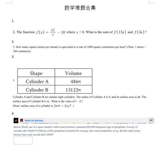 蒲公英整理的《SAT备考数学真题难题合集》的亮点👇